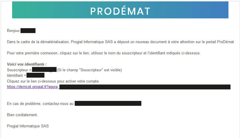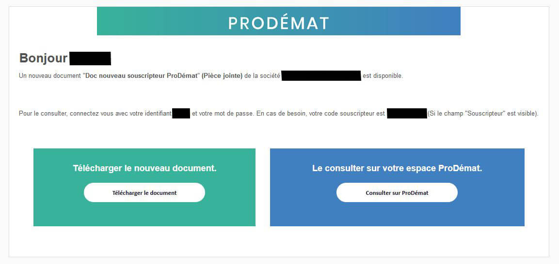 Cet e-mail vous permet de télécharger directement le document, ou de le consulter sur votre espace personnel ProDémat