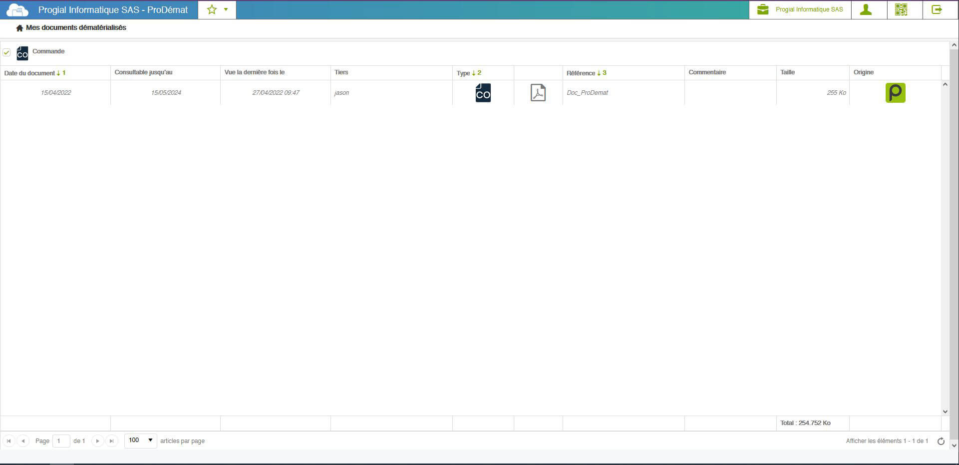 Il est également possible de trier vos documents par type de fichier (commandes, factures, etc,...) à l'aide des cases à cocher en haut à gauche de l'interface.